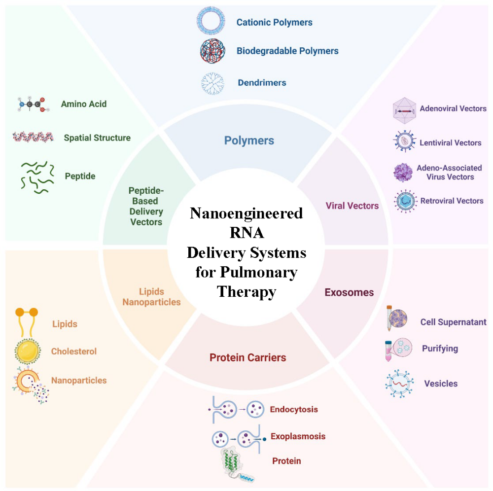 肺部疾病包括慢性阻塞性肺疾病、哮喘、肺纤维化和肺癌等,是全球重要致死致残原因,传统疗法侧重症状管理而非病因治疗。RNA疗法可在分子水平调控基因表达,但受限于RNA的不稳定性、酶降解及组织特异性差等问题。肺部独特的粘液屏障、上皮屏障、巨噬细胞清除和RNA酶降解等生理屏障,使得实现高效肺靶向RNA递送成为核心挑战。