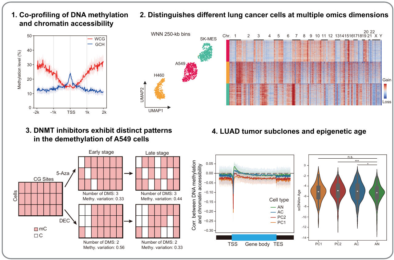 作为全球发病率和死亡率最高的恶性肿瘤之一,肺癌(尤其是肺腺癌)的异质性强、演化机制复杂,一直是临床诊疗的重点与难点。表观遗传调控紊乱是肿瘤发生发展的核心驱动力,其中DNA甲基化与染色质可及性的协同作用失衡,在肺腺癌的恶性转化中扮演关键角色。然而,传统单细胞测序技术(scCOOL-seq、scNMT-seq等)依赖细胞裂解液,存在通量低、成本高、耗时久等瓶颈,难以规模化解析肿瘤微环境中复杂的表观遗传异质性,极大限制了对肺腺癌发病机制的深度探究。