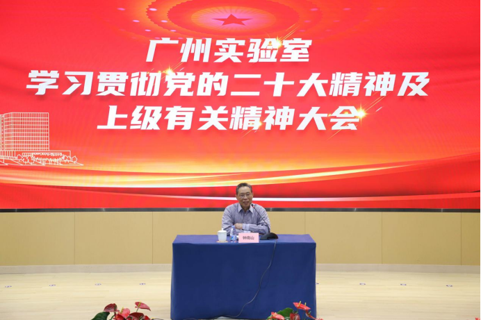 钟南山院士结合学习习近平总书记在中共中央政治局第三次集体学习时的重要讲话精神,围绕深入学习贯彻党的二十大关于科技创新的部署要求,从准确把握科技创新面临的新形势新任务新要求、自觉履行加快推进高水平科技自立自强的使命担当等方面作了全面深入的辅导,回顾了广州实验室的发展过程和在疫情防控中所发挥的作用,并凝练提出以“听党话、使命感,争分秒、危机感,勤思索、善巧干,崇合群、尚协作”为主要内容的广州实验室精神,对广大科研工作者及行政管理人员提出具体要求和殷切希望。