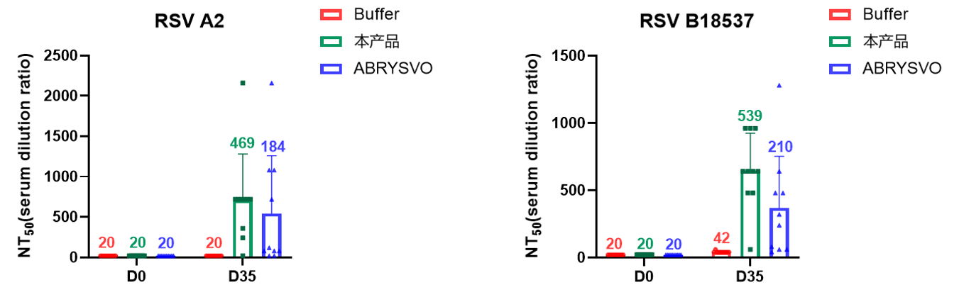 图:本产品与辉瑞对照产品(ABRYSVO)棉鼠免疫原性评价